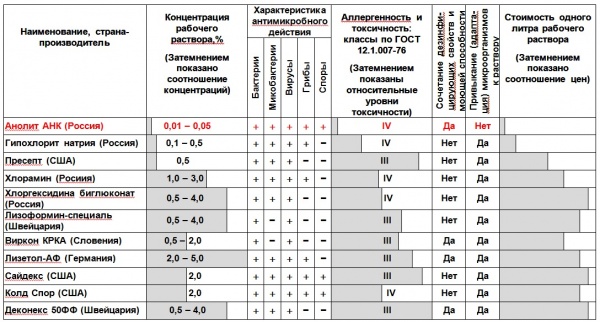 Сравнительные характеристики анолита АНК